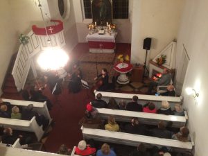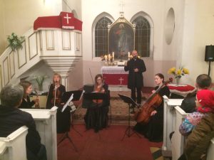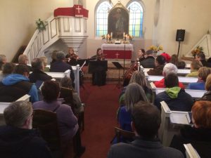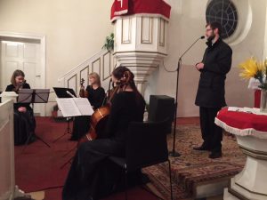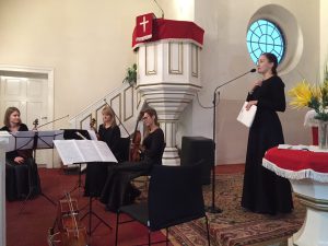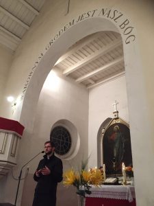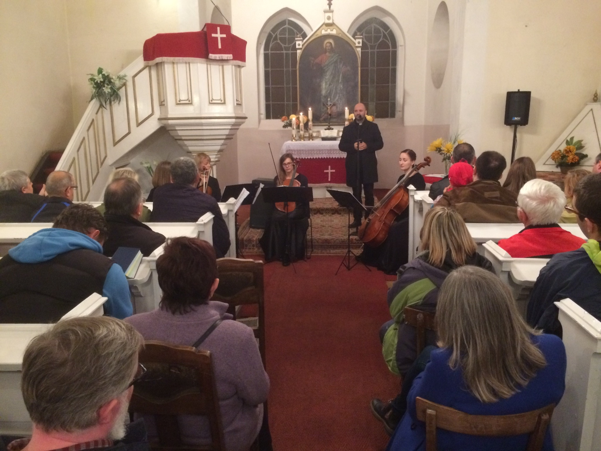 Proboszcz przedstawił w kilku słowach historię reformacji oraz podkreślił, że dzisiaj, we wzajemnym poszanowaniu możemy spotykać się ekumenicznie, czego dowodem jest nasza codzienność i koncert reformacyjny, gdzie spotkaliśmy się w gronie ludzi różnych wyznań. Zespół przywitał nas słynną Arią na strunie G Jana Sebastiana Bacha, następnie po krótkim wprowadzeniu ks. Wójcika na temat pieśni napisanej przez ks. dr Marcina Lutra na bazie Psalmu 46 – Warownym Grodem, która stała się hymnem kościoła luterańskiego, mogliśmy wsłuchać się w jej brzmienie i trochę przenieść w czasie, właśnie za sprawą tego luterańskiego chorału. Później o pyskowickich ewangelikach i historii Kościoła Piotra i Pawła w Pyskowicach, mówił Błażej Kupski – historyk, nauczyciel, który zainicjował także wystawę 500 lat Reformacji – Ewangelicy nad Dramą, którą mogliśmy podziwiać od lipca do dnia koncertu w pyskowickim ratuszu. Zostaliśmy zaproszeni po koncercie do obejrzenia wystawy i, jak się okazało, wiele osób udało się jeszcze po koncercie, by ją zobaczyć. Po wysłuchaniu prelegenta, zatopiliśmy się w dźwięki III Koncertu Brandemburskiego G-dur Jana Sebastiana Bacha i doświadczyliśmy geniuszu Bacha. Następnie wysłuchaliśmy Suity Abdelazer dzieła Henrego Purcella. Później słuchaliśmy ks. Tymoteusza Bujoka – wikariusza parafii ewangelicko-augsburskiej w Gliwicach, który mówił o Bogu, który kocha człowieka do tego stopnia, że nie zawahał się oddać swojego jedynego Syna Jezusa Chrystusa, by nas zbawić. Poruszeni duchowo wsłuchaliśmy się w blok religijnych pieśni protestanckich: Cudowną Bożą łaskę i Wszystko Tobie dziś oddaję. Następnie ks. Andrzej Wójcik mówił o trudnych momentach naszego życia i potrzebie trzymania Bożej dłoni. Nie zabrakło zatem pieśni Ujmij mą dłoń i Być bliżej Ciebie chcę. Ta druga podobno wybrzmiała jako jeden z ostatnich utworów granych przez muzyków na tonącym Titanicu. W następnej części koncertu usłyszeliśmy kolejnego reformacyjnego twórcę – Jerzego Filipa Telemana i jego Sonatę na skrzypce I, skrzypce II, altówkę i wiolonczelę. O utworach klasycznych, ich twórcach i historii pięknie opowiadała Joanna Zub – wiolonczelistka zespołu. Owacjami na stojąco, żegnaliśmy Crystal String Quartet, a na bis usłyszeliśmy rozrywkowe El Choclo – jedno z najsłynniejszych tang argentyńskich, skomponowane przez Ángela Villoldo w 1905 roku.