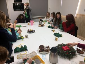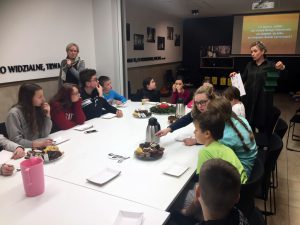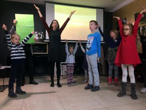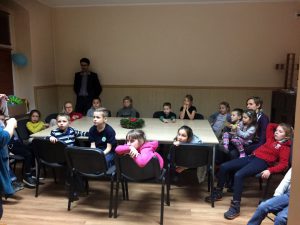 Następnie Ciocia Tysia poprowadziła nas w krótkiej modlitwie, po której podzieliliśmy się na dwie grupy. Młodsze dzieci poznawały historię biblijną o pasterzach, których odwiedził Anioł i przekazał im Dobrą Nowinę o narodzinach Jezusa. Grupa starsza rozmawiała na temat skojarzeń, jakie budzą w nas kolejne litery wyrazu „ŚWIĘTA” – i jakie powinny budzić.