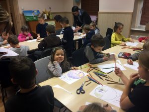 We wtorek 12 grudnia po południu dzieci z naszej parafii wzięły udział w rekolekcjach adwentowych, przygotowanych przez księży i ciocie prowadzące szkółki niedzielne. Spotkanie rozpoczęło się śpiewem: wspólnie wykonaliśmy kilka ulubionych piosenek, a potem ćwiczyliśmy kolędy, które zabrzmiały także na nabożeństwie rodzinnym. Po części muzycznej przyszedł czas na chwilę wyciszenia. Dzieci wysłuchały opowiadania o tym, jak Michał Anioł chciał namalować portret Boga i co z tego wynikło…