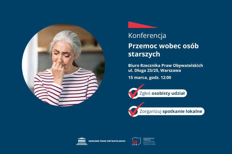 15 marca 2024 r. w godz. 12:00 – 14:00 w Biurze RPO przy ul. Długiej 23/25 w Warszawie odbędzie się konferencja pt. „Przemoc wobec osób starszych”. Wydarzenie będzie transmitowane w internecie, a uczestnictwo w nim będzie możliwe w formie spotkań lokalnych. Wydarzenie organizowane jest przez Rzecznika Praw Obywatelskich we współpracy z Ogólnopolską Federacją Stowarzyszeń Uniwersytetów Trzeciego Wieku.