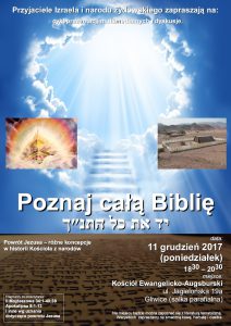 Za nami kolejne spotkanie z cyklu Poznaj całą Biblię, które odbyło się 11 grudnia 2017 r. o godzinie 18.30 w salce parafialnej przy ul. Jagiellońskiej 19a w Gliwicach. Temat brzmiał następująco: Powrót Jezusa – różne koncepcje w historii Kościoła z narodów. Przyjaciele Izraela zapraszają także na pozostałe spotkania: > 16 grudnia 2017 r. – Chanuka,… Czytaj dalej Poznaj całą Biblię – 11 grudnia 2017