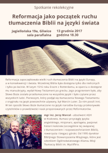 Za nami spotkanie rekolekcyjne! Gościem spotkania był p. Jerzy Marcol, który przedstawił temat: Reformacja jako początek ruchu tłumaczenia Biblii na języki świata.