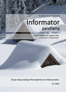 18 grudnia 2016 roku w czwartą niedzielę Adwentu spotkaliśmy się na nabożeństwie rodzinnym, podczas którego mogliśmy wraz z dziećmi zobaczyć teatrzyk przygotowany przez ekipę szkółkową. Fabuła dotyczyła istoty świąt, które bez treści – Jezusa, stają się bezwartościowe i są jak opakowanie prezentu bez prezentu…