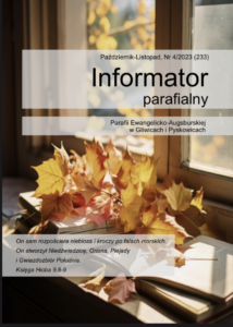 Rodziców zapraszamy na spotkania. Drodzy Rodzice! Zapraszamy w środę 6 września 2023 r,. na konsultacje związane z uczestnictwem dzieci w lekcjach religii w naszym punkcie katechetycznym. Od tego roku nauczenie w młodszych klasach przejmuje nowa katechetka – Justyna Minkina. Zapraszamy w godzinach 16:00-17:30 (grupy młodsze oraz zeszłoroczni konfirmanci) Spotkanie rodziców grupa konfirmacyjna 2023/2024 o godz.… Czytaj dalej Konsultacje ws lekcji religii i nauki konfirmacyjnej – 6 września