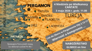 Serdecznie zapraszamy na nabożeństwa do naszych kościołów w Pyskowicach, Łabędach i w Gliwicach lub transmisję on line z Gliwic:03.05. – 4 Niedziela po Wielkanocy – 11.00 – on line Plan nabożeństw – Gliwice, Łabędy, Pyskowice – tutaj Prosimy o składanie ofiar przy pomocy systemu Przelewy24 lub przelewem (BIC: BPKOPLPW): Gliwice: PKOBP – 70102024010000040200448118 (IBAN = PL+ numer konta)Pyskowice: ALIOR… Czytaj dalej Nabożeństwa w realu i wirtualu 2026